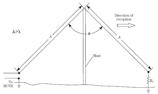 Two long-wire antennas connected to form a V. A directional antenna. |
