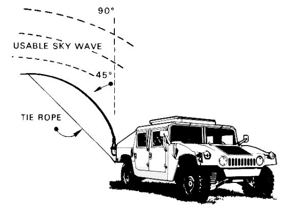transmitting antenna. If used on a ship, a wire rope antenna is strung